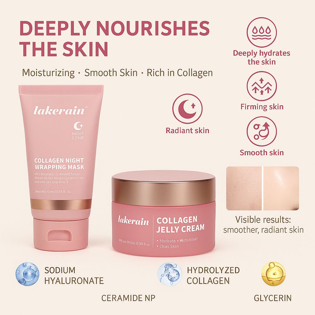 Experience an overnight transformation with Quia's Collagen Night Wrapping Mask, meticulously crafted to care for and protect your skin's elasticity while you sleep. This innovative peel-off facial mask is designed to work its magic overnight, providing intensive care for both elasticity and hydration.